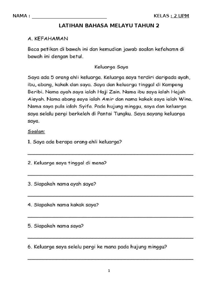 Latihan Bahasa Melayu Tahun 2 2018 Vincentrkc